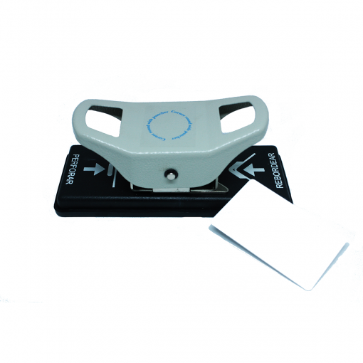 A Canteadeira Conjugada com Furador Ovóide permite a perfuração de crachás, plásticos e papéis em geral, proporcionando furos bem acabados, contando ainda com a Canteadeira para arredondar cantos.