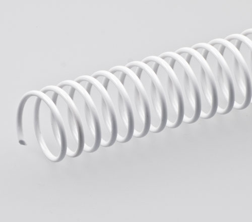 Espiral em PVC, bitola 33mm, na cor BRANCO, com 56 espiras ou 35 cm, pacote com 27 peças, capacidade para 250 folhas.